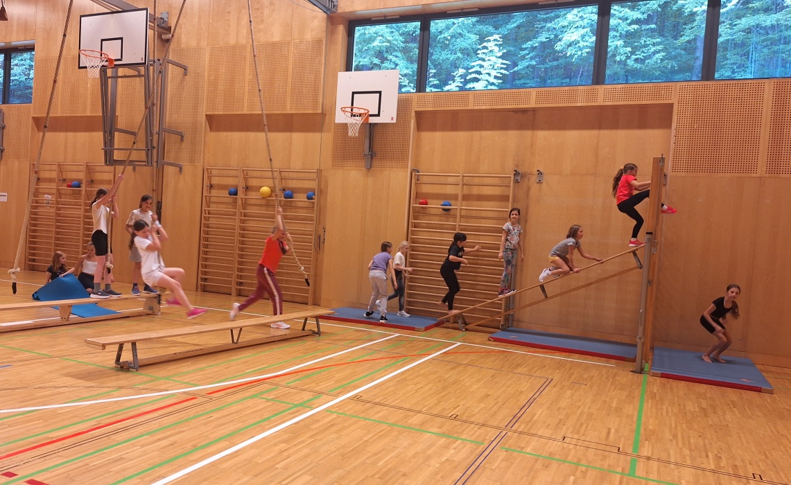 Der Bewegungs- und Sportunterricht geht weit über körperliche Fitness hinaus. Er bietet den Schüler*innen wertvolle Gelegenheiten, ihre sozialen Kompetenzen zu stärken und kooperatives Verhalten einzuüben. „The Floor is Lava“ ist ein Beispiel der zahlreichen Spiele, die regelmäßig im Unterricht zum Einsatz kommen. Dabei gilt es, einen Parcours zu überwinden, ohne den Boden zu berühren – der „Lava“ darstellt. Die Schüler*innen haben zwei Matten zur Verfügung, die sie im Team geschickt einsetzen müssen, um gemeinsam ans Ziel zu gelangen. Diese spielerische Herausforderung stärkt Zusammenarbeit, Kommunikation, Absprachen und Rücksichtnahme. Nur wenn alle Beteiligten zusammenarbeiten und einander unterstützen, kann die Aufgabe erfolgreich gemeistert werden. So erleben Kinder und Jugendliche ganz praktisch, wie wichtig Teamgeist und gegenseitige Hilfe sind – Kompetenzen, die auch weit über den Sportunterricht hinaus im schulischen und sozialen Alltag von Bedeutung sind.
