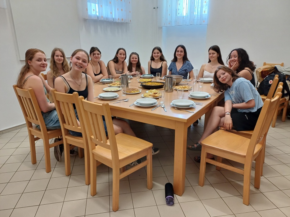 Grammatik und Kultur werden oftmals gemeinsam erarbeitet. Spanische oder lateinamerikanische Lieder, wie beispielsweise das kubanische Lied La Gozadera, das so viel wie ‘eine gute Zeit verbringen’ bedeutet, werden im Unterricht eingesetzt, um zum einen Spanien bzw. die spanischsprachigen Länder Lateinamerikas zu erarbeiten, und zum anderen die Lebensfreude und Bräuche dieser Länder in den Klassenraum zu holen, indem gesungen und getanzt wird. Hierzu wurden auch im Rahmen des Unterrichts bereits Salsatanzkurse mit einer Muttersprachlerin abgehalten. Einen weiteren spanischen Brauch - ir de tapas - dürfen unsere Schüler:innen je nach Gelegenheit hautnah erleben. Nach den theoretischen Einheiten und dem Erlernen des Vokabulars zum Thema ‘Tapas’ gehen wir von der Theorie in die Praxis über und verzehren im Rahmen eines kleinen Buffets im Unterricht chorizo, aceitunas und andere spanischen Köstlichkeiten. Auch beim desayuno español, oder beim spanischen Kochen, tauchen die Schüler:innen in die Kulinarik Spaniens und Lateinamerikas ein und lernen daneben im authentischen Umfeld das passende Vokabular.