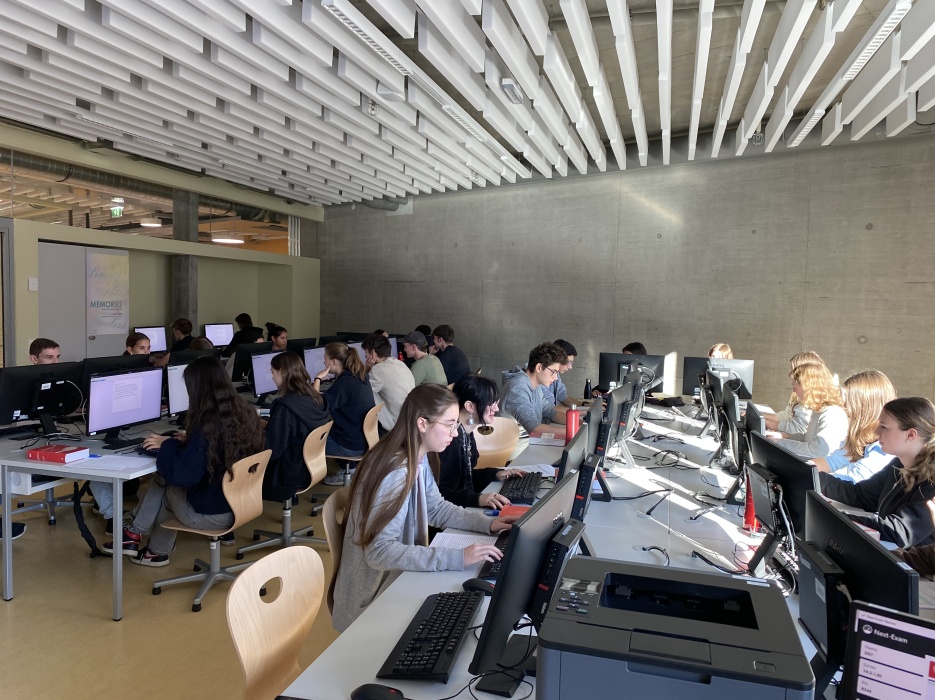 Seit letztem Jahr verfassen unsere Oberstufenklassen und -jahrgänge zum Teil ihre Deutsch-Schularbeiten in digitaler Weise am Computer. Dies betrifft die diesjährigen 6. und 7. Klassen und soll fortan auf weitere Jahrgänge ausgedehnt werden. Die Fachgruppe Deutsch hat damit auf den in den letzten Jahren öfter geäußerten Wunsch auf Schüler- und Elternseite reagiert, ihre schriftlichen Arbeiten auf diese Weise verfassen zu können.