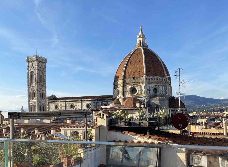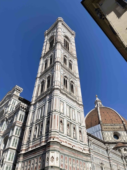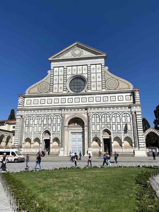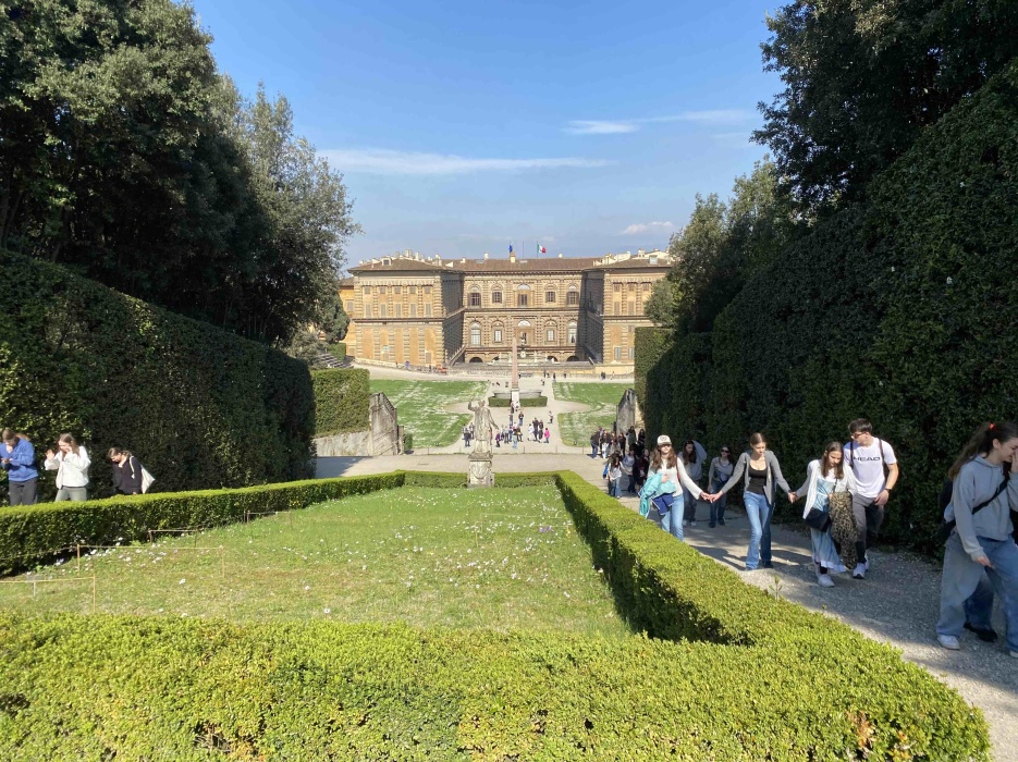 Mit dem Nachtzug ging es direkt in die malerische Stadt am Arno. Neben dem Dom Santa Maria del Fiore (samt Vorgängerbau Santa Reparata sowie Baptisterium) besichtigten wir auch das Dommuseum, selbstverständlich Michelangelos berühmten David in der Galleria dell’Accademia und Meisterwerke der Renaissancekunst in den Uffizien. Die Basiliken Santa Croce, San Miniato al Monte und Santa Maria Novella mit der ältesten Apotheke Europas offenbarten die Bandbreite von romanischer und gotischer Architektur bis zu der der Renaissance. Ein lohnender Spaziergang über den Ponte Vecchio führte uns zum Piazzale Michelangelo, der einen eindrucksvollen Blick über die Stadt bot. Die Gemälde- und Modeausstellungen im Palazzo Pitti, umgeben vom Boboli-Garten, sowie die sogenannte Medici-Kapelle bildeten den krönenden Abschluss dieser Projektwoche. Bis auf den Anreisetag genoss die Gruppe herrliches Frühlingswetter und konnte in der Freizeit die Stadt mit ihren unzähligen Sehenswürdigkeiten auf eigene Faust erkunden, zeichnen und in Kleingruppen das toskanische Flair genießen.