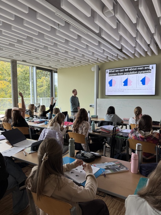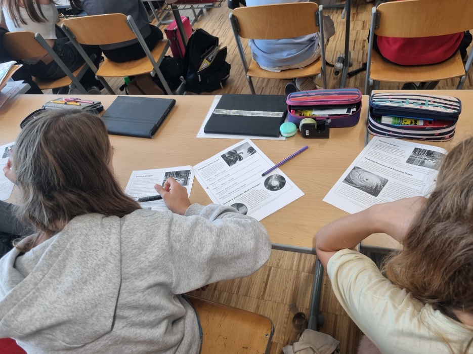 Ein weiterer Aspekt unseres Unterrichts ist der EAA-Zweig, den die Schule anbietet. In diesem wird Englisch als Arbeitssprache genutzt, auch im Fach Geographie und wirtschaftliche Bildung. Während sich die 3C mit dem Thema „Bevölkerung“ auseinandersetzt und die Bevölkerungspyramiden von Österreich und den USA vergleicht, beschäftigt sich die 4C mit Hurrikan „Milton“, einem Wirbelsturm, der die Küstenregionen der USA schwer getroffen hat. Neben der geografischen und wirtschaftlichen Bildung steht der interkulturelle Austausch im Vordergrund. Der Native Speaker bringt authentische Einblicke in das Leben in den USA mit und fördert somit das Verständnis für andere Kulturen.