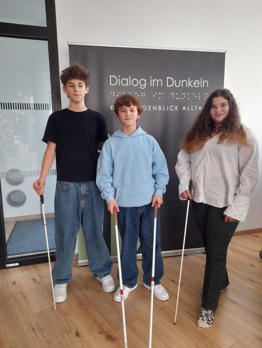 Unter diesem Motto steht die Ausstellung Dialog im Dunkeln, die die Klasse 4D