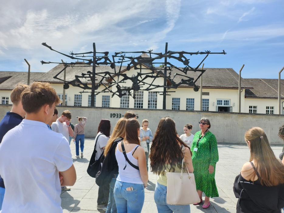 Der Dienstag führte die Klassen zur KZ-Gedenkstätte Dachau, ein Ort des Erinnerns und der kritischen Reflexion. Im Rahmen einer geführten Besichtigung setzten sich die Schüler:innen intensiv mit der Geschichte des Nationalsozialismus, den Mechanismen der Ausgrenzung und den Folgen totalitärer und menschenverachtender Ideologien auseinander.