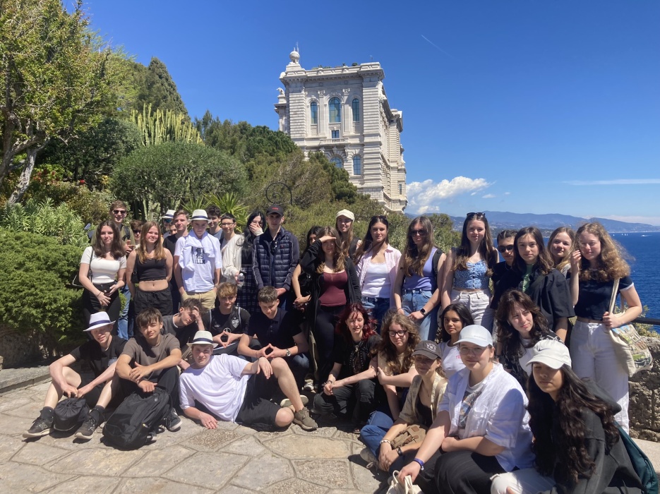 Vom 23. April bis zum 29. April 2023 verbrachten die Klassen 5A und 5C eine Projektwoche in Frankreich an der Côte d’Azur. Wir hatten die Möglichkeit, eine Woche lang die schöne Küste Südfrankreichs zu erkunden und an spannenden Projekten teilzunehmen. Dabei wurden die Schwerpunkte der Klassen berücksichtigt - so besuchte die 5A mit naturwissenschaftlichem Schwerpunkt Workshops im Ozeanographischen Museum in Monaco sowie in einem botanischen Garten, während die 5C auch Französischunterricht vor Ort hatte.