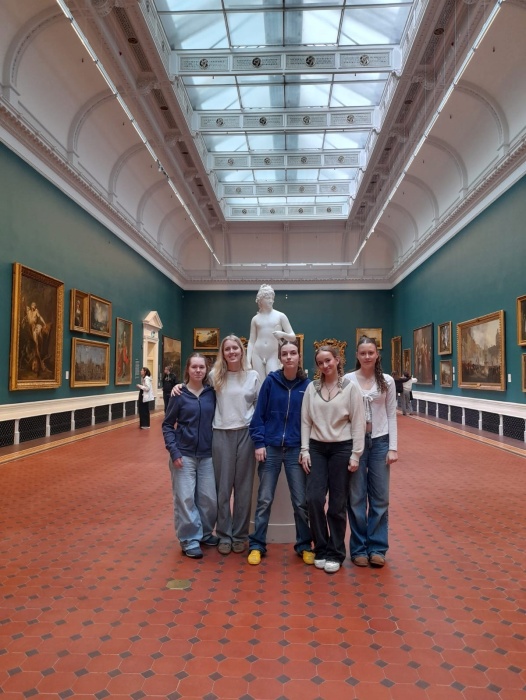 Auch kulturell hatte die Reise viel zu bieten: Besuche im Archäologischen Museum, in der National Gallery, in der Marsh′s Library sowie in der beeindruckenden St. Patrick′s Cathedral standen auf dem Programm. Zudem konnten die Schülerinnen das Umland Dublins bei zwei Tagesausflügen erkunden. So ging es zum beeindruckenden Kilkenny Castle sowie nach Howth – ein malerisches Küstenstädtchen, in dem eine Klippenwanderung inklusive einer kurzen, aber erfrischenden Abkühlung im Meer stattfand. Ein einmaliges Erlebnis war zudem ein gemeinsamer Abend mit irischen Songs, bei dem die Schüler*innen auch einige traditionelle Tänze ausprobieren und ihr Können unter Beweis stellen konnten.