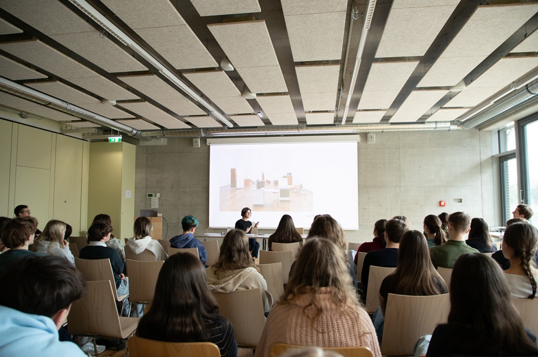 Ursula Pokorny ist Absolventin unserer Schule, des künstlerisch-bildnerischen Schwerpunkts, und international als aufstrebende Kuratorin tätig. Im Rahmen ihres Vortrags „Kuratorische Praxis - Ausstellungen planen, gestalten und realisieren“ teilte sie ihre Erfahrungen als Kuratorin mit den Schüler:innen der Oberstufe. Sie gab einen spannenden Einblick in die unterschiedlichen Zielsetzungen und Vermittlungsstrategien der wesentlichen Kunstinstitutionen wie Galerien, Kunstvereine und Museen. Die Schüler:innen konnten in diesem Zusammenhang auch die unterschiedlichen Berufsfelder nachvollziehen, die für die Planung und Umsetzung von Kunstausstellungen von Bedeutung sind. Mit der Schilderung ihres beeindruckenden Werdegangs, der sie ausgehend von einem Kunststudium in Wien an das renommierte Center for Curatorial Studies am Bard College in New York führte, zeigte sie auch eine mögliche Perspektive auf, theoretisch im Bereich der Kunst tätig zu sein.
