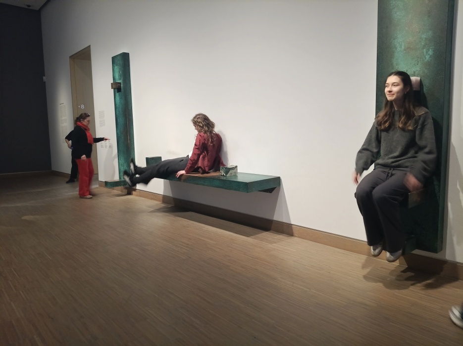Die Intensität der Exponate regte die Klasse zu intensiven Diskussionen und persönlichen Reflexionen an. Ein besonderes Augenmerk galt dabei der kuratorischen Gestaltung: Gemeinsam analysierten die Schülerinnen und Schüler die Komposition der Ausstellung und gingen der Frage nach, wie die Beziehungen zwischen den einzelnen Werken die Gesamtwirkung beeinflussen.