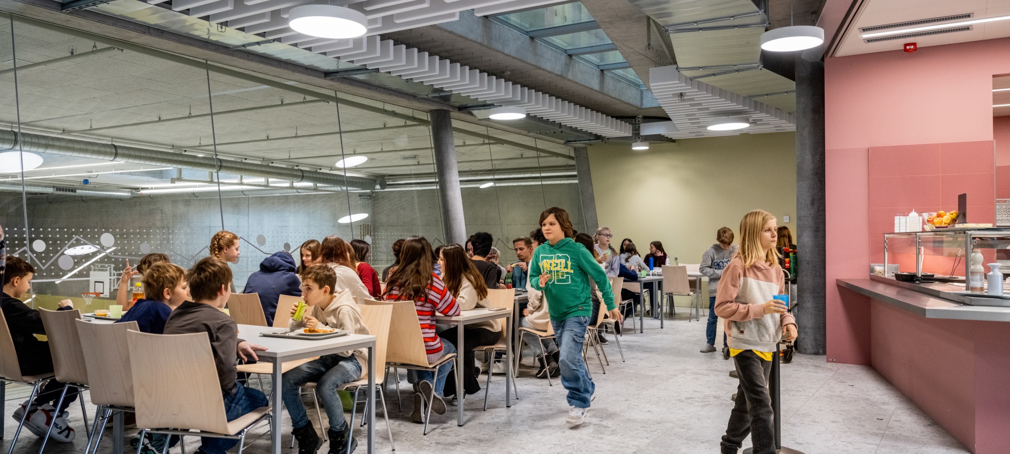 Auch in der Mittagsbetreuung besteht die Möglichkeit, ein Mittagessen in der Schulkantine zu konsumieren. Alternativ kann natürlich auch eine mitgebrachte oder beim Schulbuffet erworbene Jause konsumiert werden. Beachten Sie bitte, dass das Mittagessen nur im Zuge der Nachmittags- oder Mittagsbetreuung in Anspruch genommen werden kann (Aufsichtspflicht).
